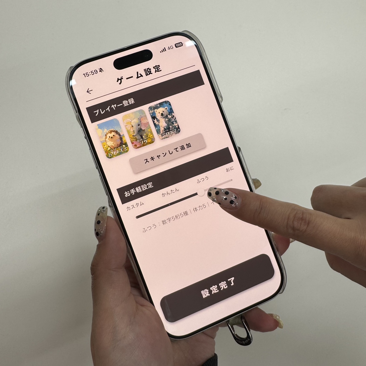 選んだ動物カードをスマートフォンでスキャンし、プレイヤーとして追加します。