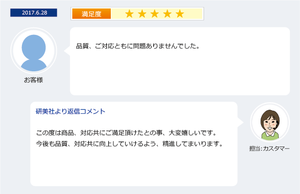 頂いたお声は出来る限り改善できるよう、社員一同務めてまいります。