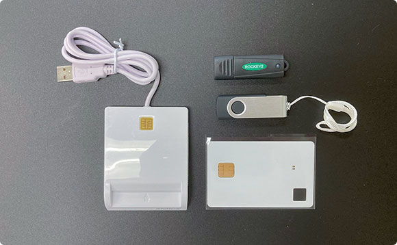 指紋登録用のソフトウェアや、US Card本体(2枚)を付属しております。実際に指紋登録の流れや、ご利用環境での動作を確認・使用感を試していただけます。